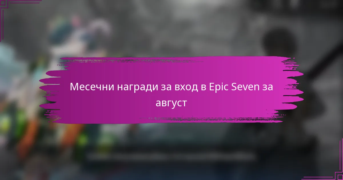 Наградите за вход в Epic Seven за август са проектирани да насърчават ежедневното участие, предлагайки разнообразие от стимули за играчите, които влизат последователно. Всеки ден представя специфични изисквания, които играчите трябва да изпълнят, за да отключат наградите, които нарастват по стойност с напредването на месеца.